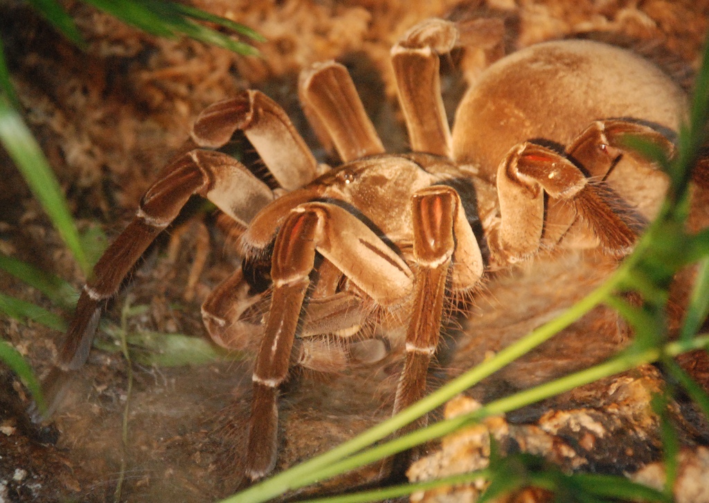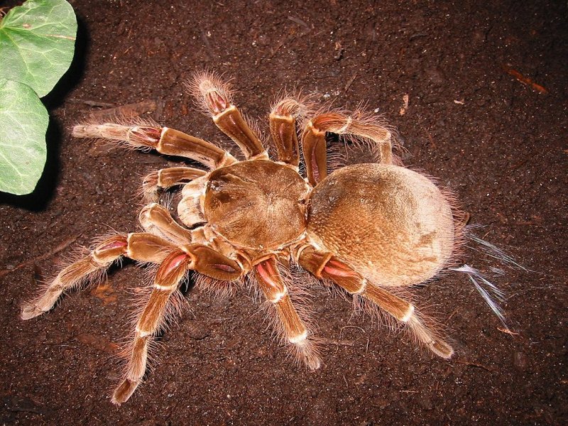 Итак, вообразите паука размером с большую тарелку, с крупным телом и длинными толстыми лапами, сплошь покрытыми красно-коричневыми волосками…